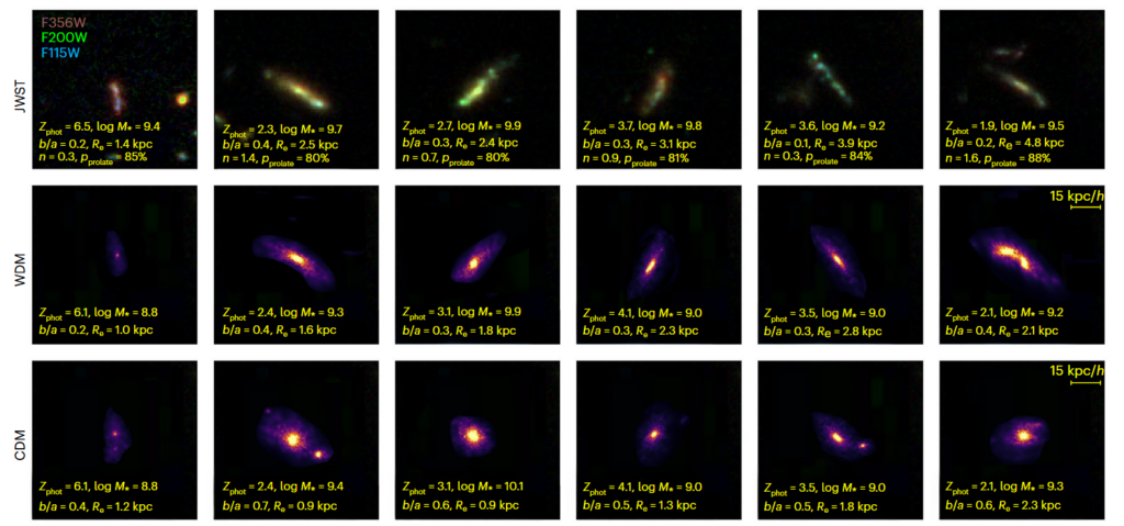 The results demonstrate that early galaxy shapes are sensitive to how smooth, coherent and uninterrupted filaments are. In that sense, galaxy morphology becomes a probe of the underlying dark matter-driven structure. However, the authors are careful not to claim that their findings point to warm dark matter ruling out the standard cold dark matter model. Similar filamentary growth can occur within a CDM framework, depending on how gas physics and feedback are modeled.